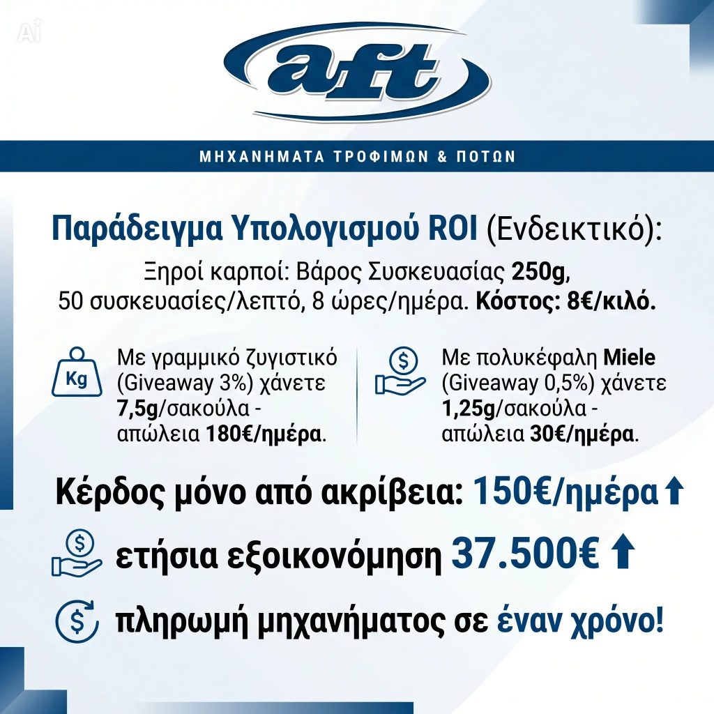| Ακρίβεια (Giveaway) | Υψηλή απόκλιση (συνήθως 2% – 5% επιπλέον προϊόν) | Ελάχιστη απόκλιση (συνήθως <1% ή <1g) | Άμεση εξοικονόμηση τόνων πρώτης ύλης ετησίως. |